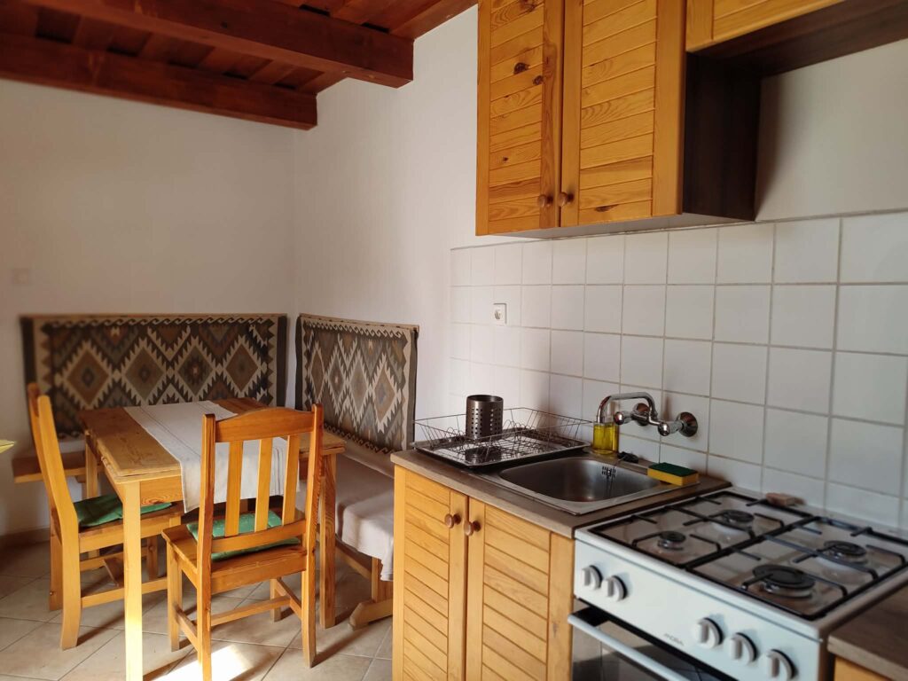 Felszerelt konyhával (tűzhely, hűtőszerkrény, mosogató, edények) várjuk vendégeinket.