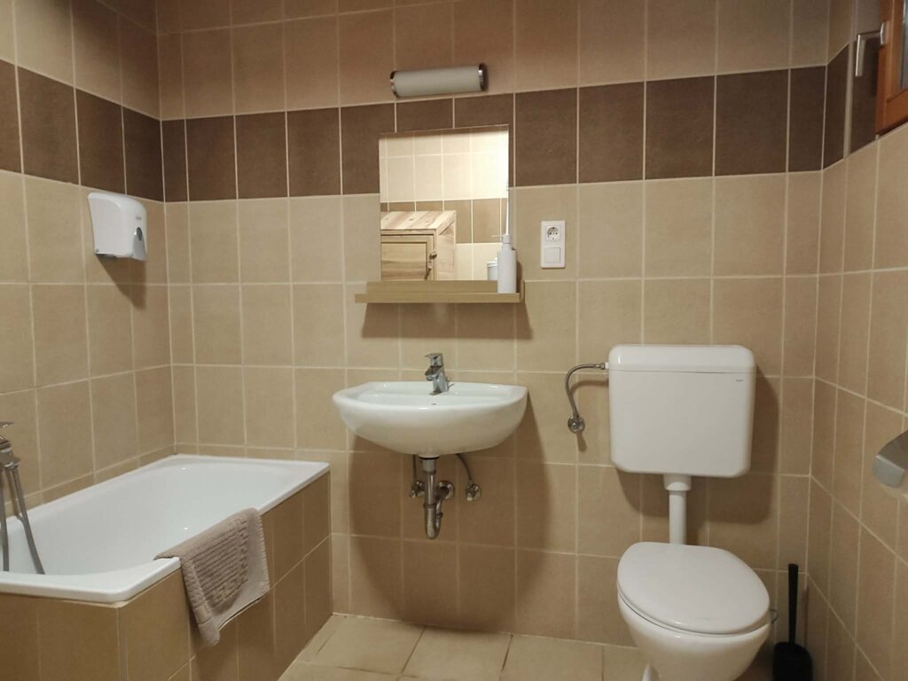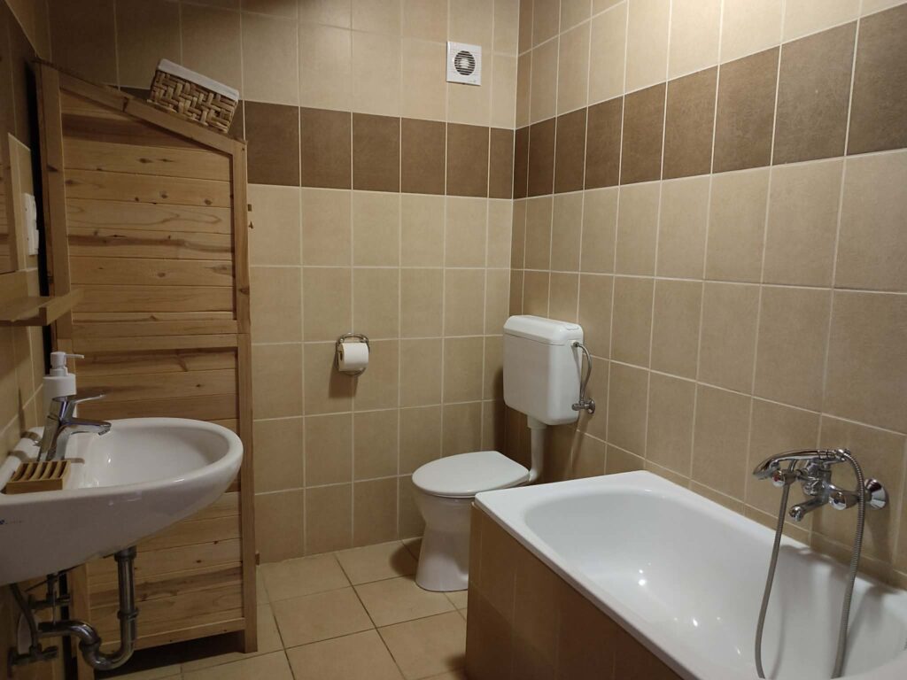 A 2 szobához 1-1 önálló fürdőszoba tartozik, egyedi melegvízellátással.